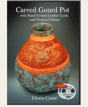 Gloria Crane's "Carved Gourd Pot with Hand-Tooled Leather Look and Textured Patina" Class is now available on DVD!