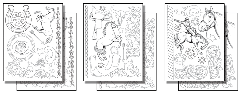Artist, Jennifer Post, wanted the 2 cracks at the top of her gourd, pictured above, to add a rugged look to her Western-themed piece. The tooled leather and bronco images are taken from the "Western Designs" Stick n Burn pack.