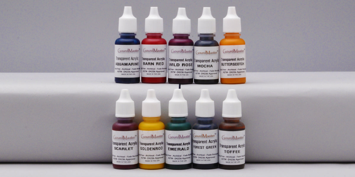 GourdMaster™ Transparent Acrylics are made using pigment rather than dye as the main carrier of color which makes them appear more bold and vibrant.