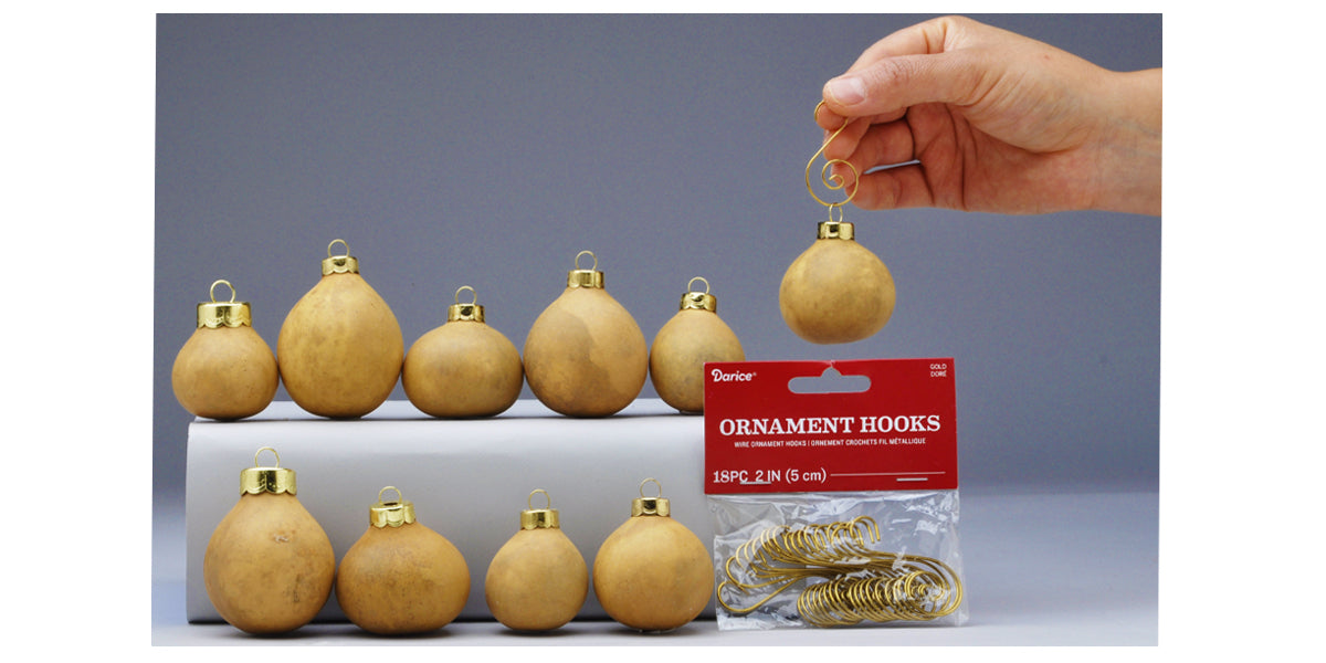 Each gourd has been carefully hand selected, cleaned on the outside, and the toppers attached so that you can get right to the fun of decorating your ornaments! Every set comes with a pack of Scroll Ornament Hooks.