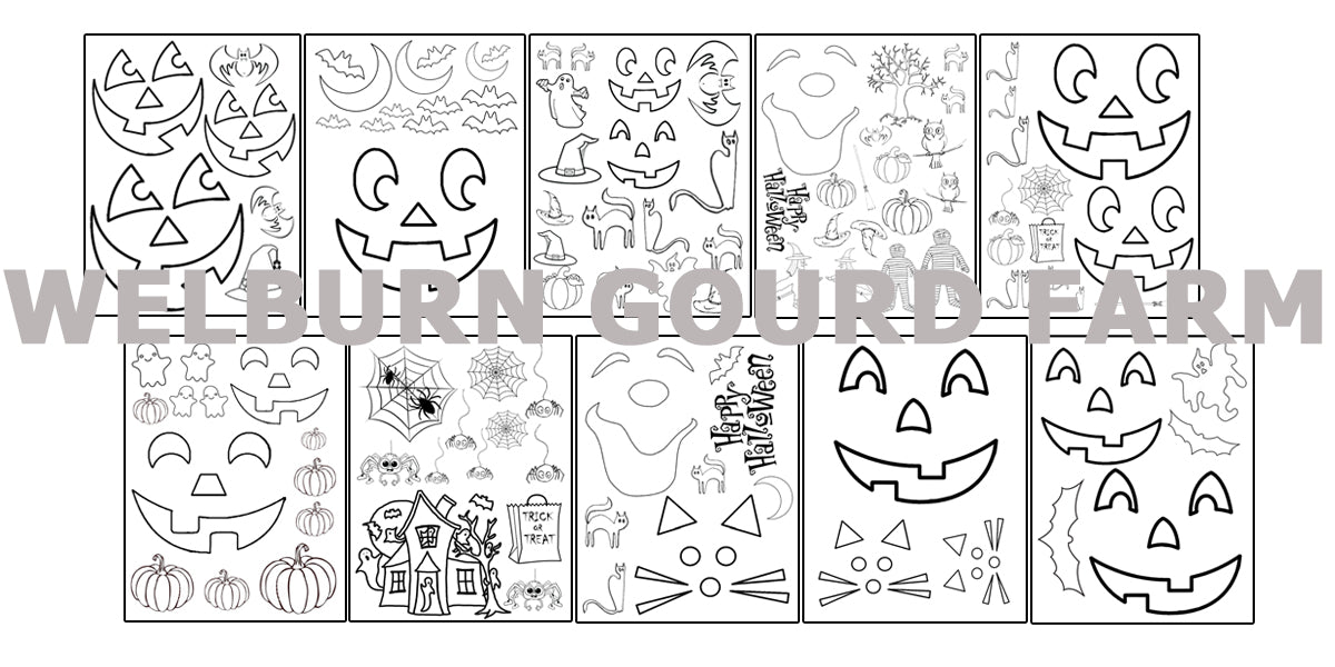 Fun Halloween Designs perfect for creating decorative jack-o-lantern gourds on almost any size gourd! Plus additional designs that are great for creating spooky Halloween scenes!