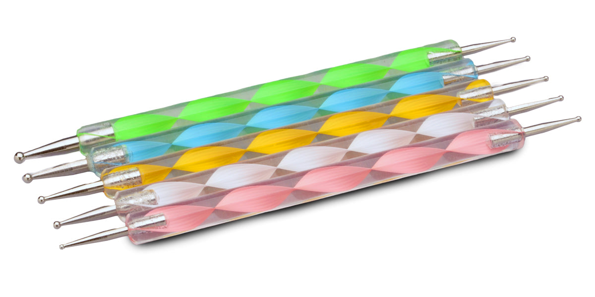 This 5-piece set features double-sided tools so you get a total of 10 different size points to give you a full range of options with your designs. Use with paint, Metallic Inks, Transparent Acrylics, and more!